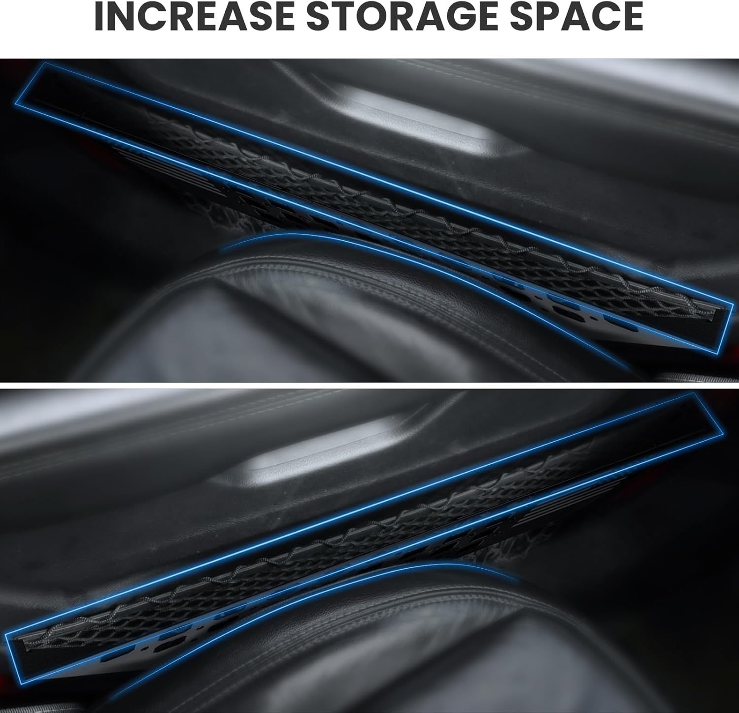 These panels maximize storage space, replace your off-roader's worn-out storage nets with these metal front door storage panels, suitable for putting paper towels, bottled water, cell phones, sunglasses, hand creams, wallets, keys, a pocket knife, a holster, & other daily gear.