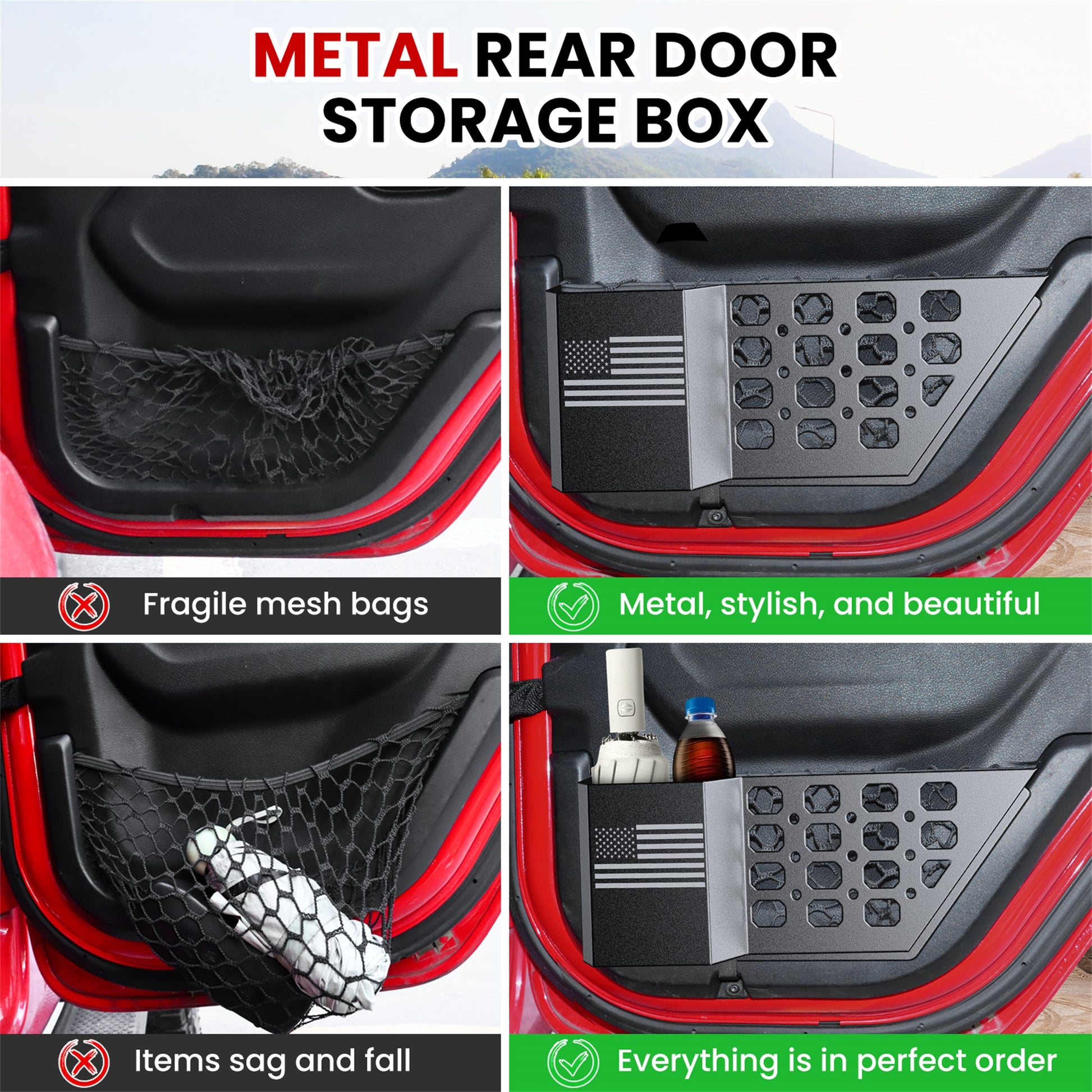 DIAMOOKY Rear Door Pocket Storage Box for Jeep Wrangler JL JLU 4XE 2018-2025 & Gladiator JT 2020-2022 2023 2024 2025, 2PCS - Rear Door Flag